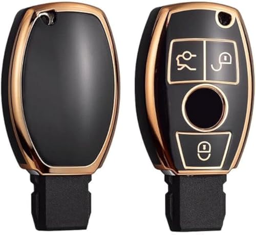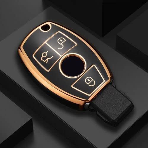USHOP - غطاء حماية لمفتاح السيارة، حافة ذهبية سوداء من يوشوب