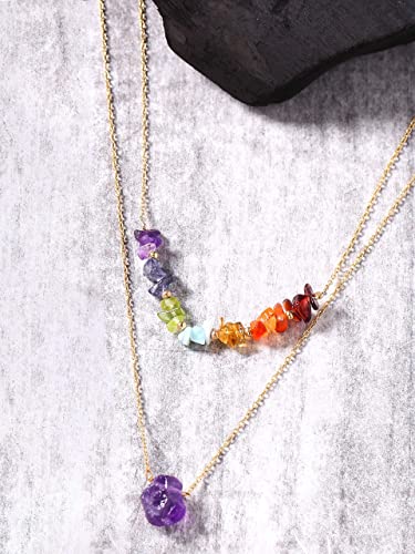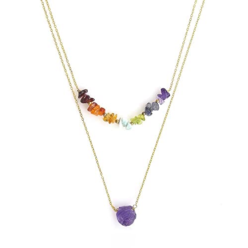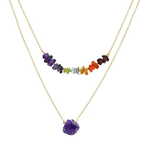 YoTreasure - يو تريجر 7 احجار شاكرا علاجية من الذهب عيار 18 قيراط على الفضة مزدوجة الطبقات، مجوهرات من الاحجار الكريمة المعدنية، حجر اميهتيست، حجر شاكرا