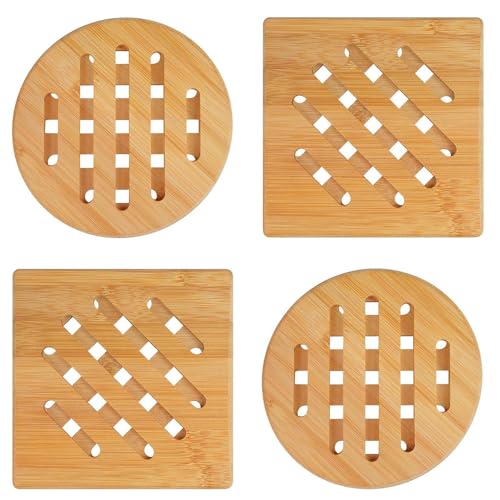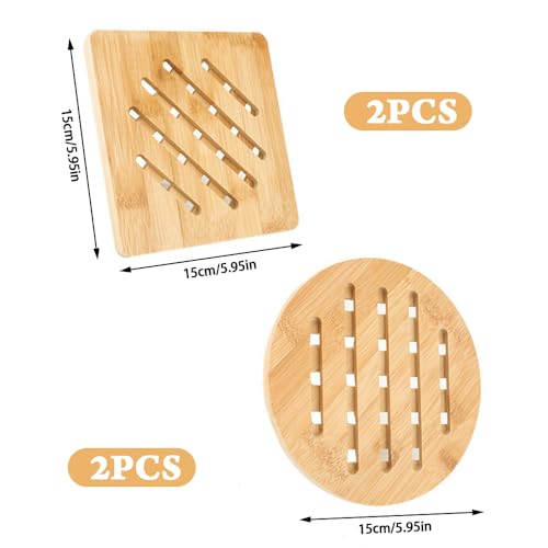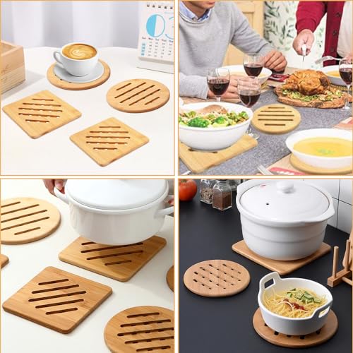 yotutun - مجموعة قواعد أكواب من 4 قطع من يوتون، قواعد أكواب مقاومة للحرارة، قواعد أكواب طبيعية مربعة ودائرية، مجموعة قواعد خشب للأكواب والبولات والأطباق (15 سم)
