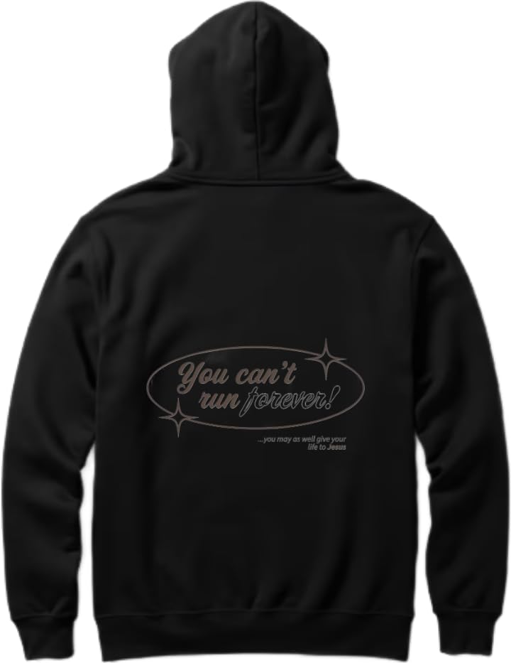 Generic - سويت شيرت بغطاء للرأس مطبوع عليه You can't run forever باللون الأسود