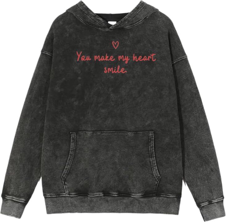 Generic - سويت شيرت بغطاء للرأس مطبوع عليه You Make my heart Smile VaIentine coupIe مغسول