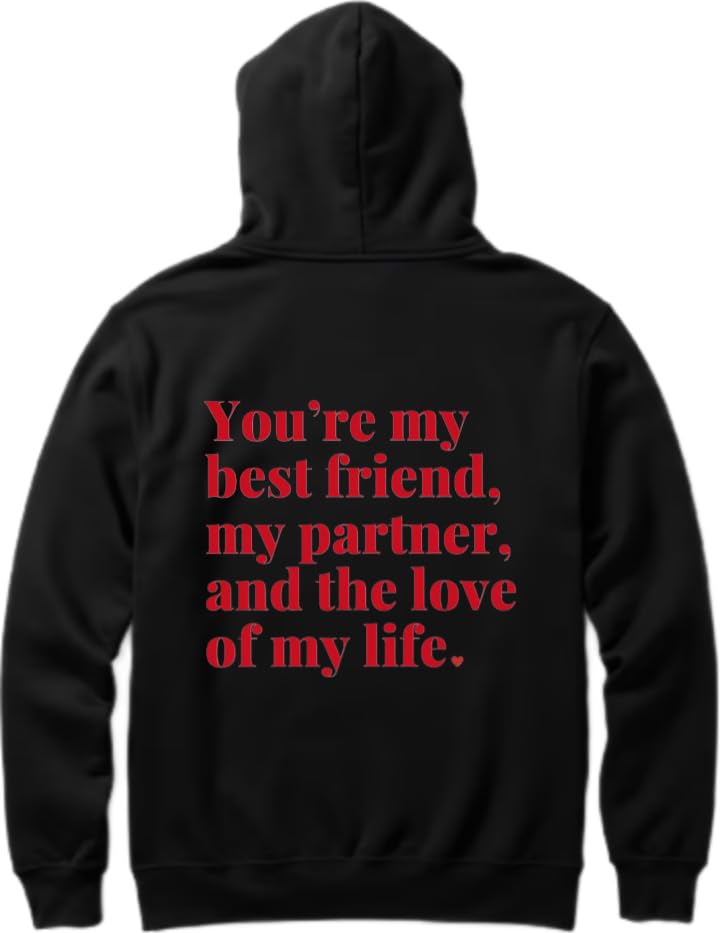 Generic - كنزة بغطاء رأس مطبوع عليها You're my best friend, my partner, and the love of my life VaIentine coupIe أسود