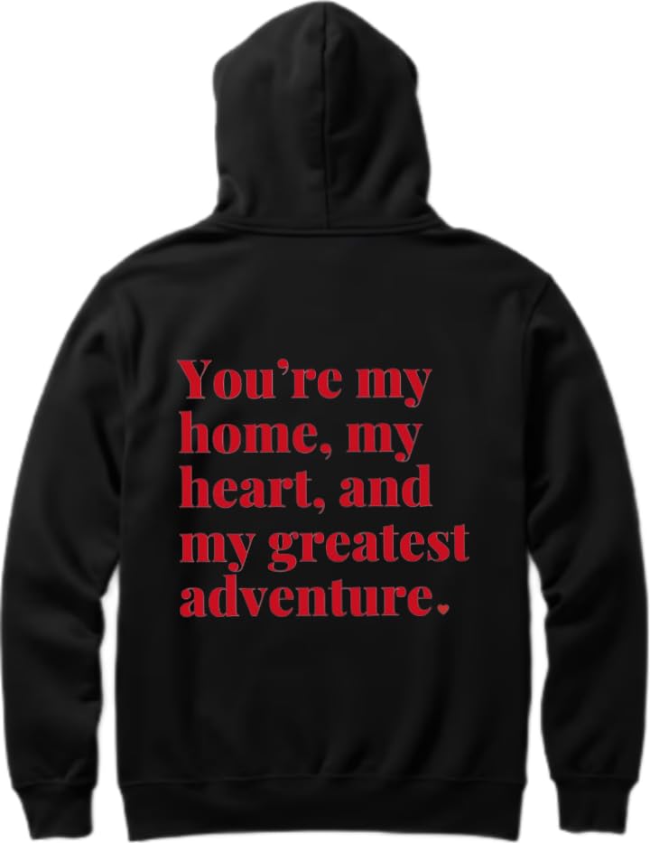 Generic - كنزة بغطاء للرأس مطبوع عليها You're my home my heart and my greatest adventure VaIentine coupIe أسود