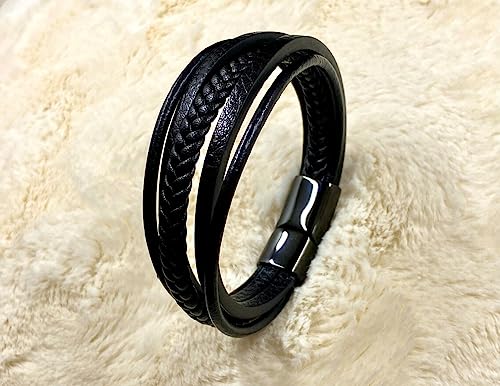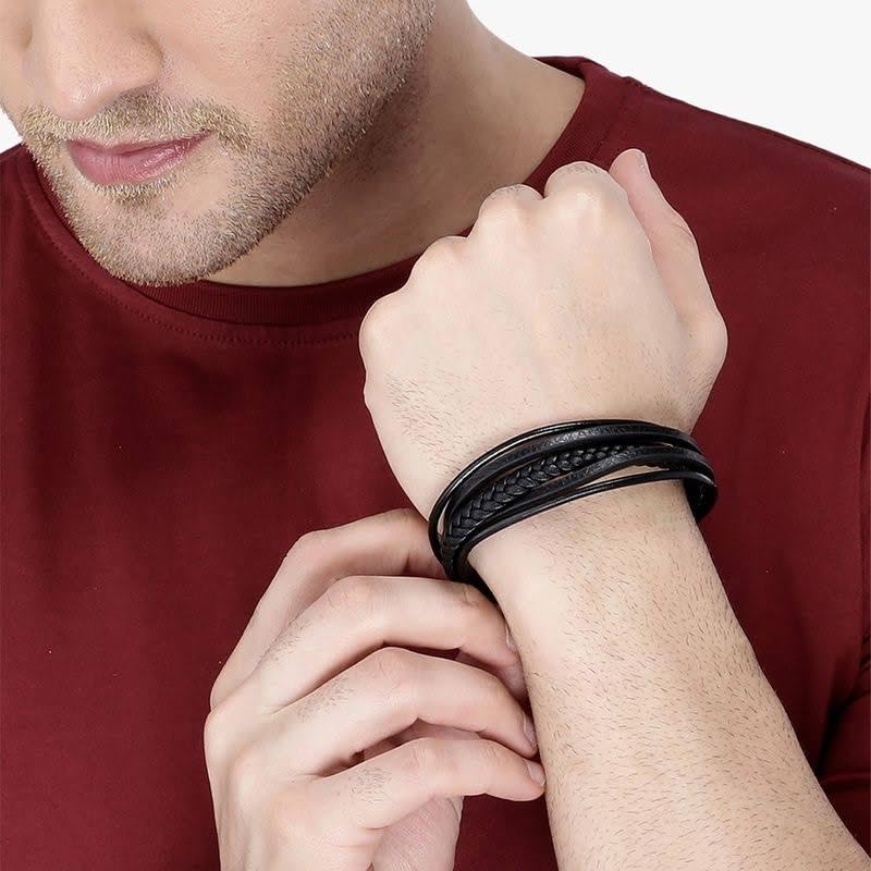 YouBella - يوبيلا اساور للرجال والاولاد من الجلد الاسود للرجال | اساور جلدية على الطراز الاوروبي الساخن للرجال | هدية عيد ميلاد للرجال والاولاد هدية الذكرى السنوية للزوج (تصميم 2)