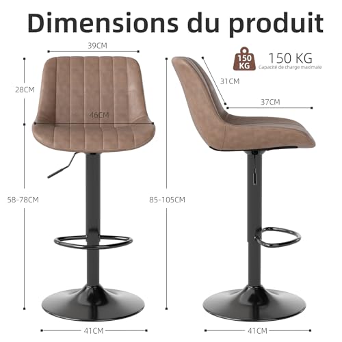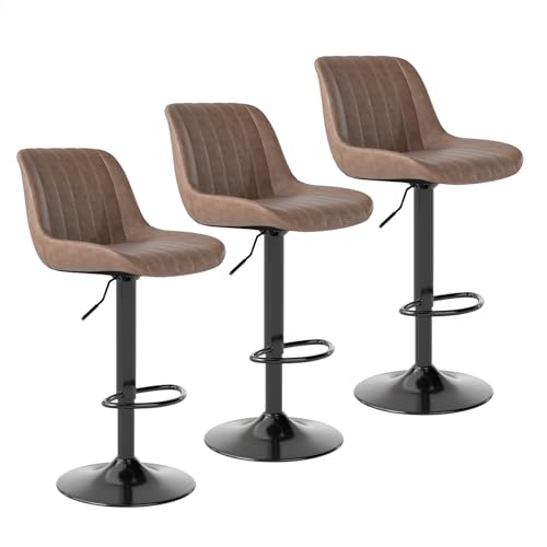 Youhauchair - مجموعة مقاعد بار دوارة بمسند للظهر، مقاعد بار قابلة للتعديل من الجلد الصناعي، مقاعد بار للمطبخ من يوهاوتشير، لون بنى (3 قطع)