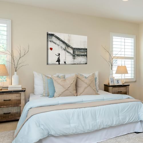 YOUHONG - لوحة فنية جدارية ملونة من بانكسي بتصميم جرافيتي القماش لتزيين غرفة النوم 16 انش ارتفاع × 24 عرض .