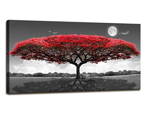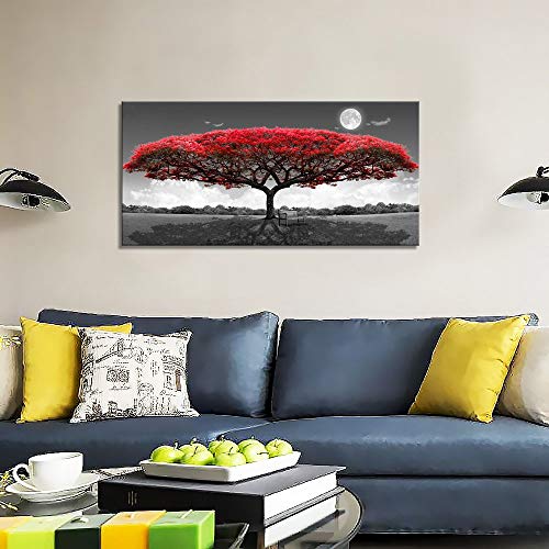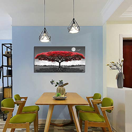 YOUKUART - يوكوارت لوحة فنية جدارية قماشية مطبوعة على شكل شجرة حمراء لديكور غرفة المعيشة واللوحة الفنية للحائط مقاس 20 انش × 40 قطع ديكور حائط مؤطرة هدايا للمكتب وجاهزة للتعليق المنزل