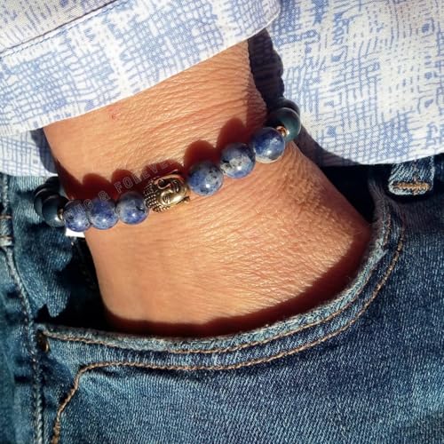 Young & Forever - سوار مصنوع يدويا من الأحجار شبه الكريمة للرجال والنساء من يونج اند فوريفر (صودا لايت/أزرق)