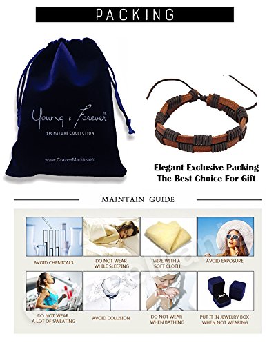Young & Forever - يونغ اند فوريفر سوار معصم معدني من الجلد الطبيعي بتصميم مرساة من الجلد الطبيعي بلون بني من راخي مناسب كهدية لعيد الصداقة، سوار معصم معدني للجنسين، كريستال
