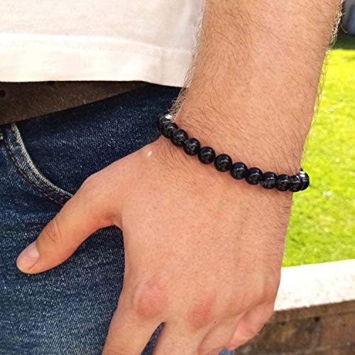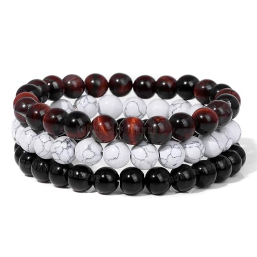 Young & Forever - يونغ اند فوريفر مجموعة اساور خرز كريستالية اصلية من حجر عين النمر الاحمر والاونيكس الاسود والهولايت من ريكي، مجموعة من 3 اساور