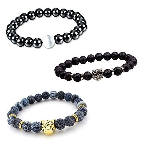 Young & Forever - يونغ اند فوريفر هدية عيد الحب، هدية راخي للاخت راكي، هدية للاخ، هدية عيد الصداقة، هدية لأفضل صديق، عبوة اقتصادية من 3 قطع من حجر لافا ديفاين من العقيق والهيماتيت والاوبال الطبيعي