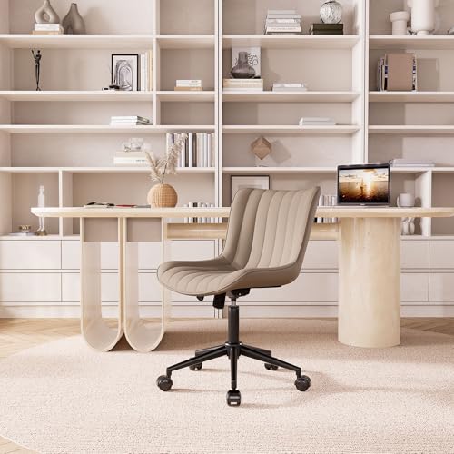 YOUNIKE - كرسي مكتب من الجلد الصناعي يونيكي دوار بارتفاع قابل للتعديل كمبيوتر مع عجلات ظهر مرتفع كاكي يتحمل حتى 300 باوند بلاستيك