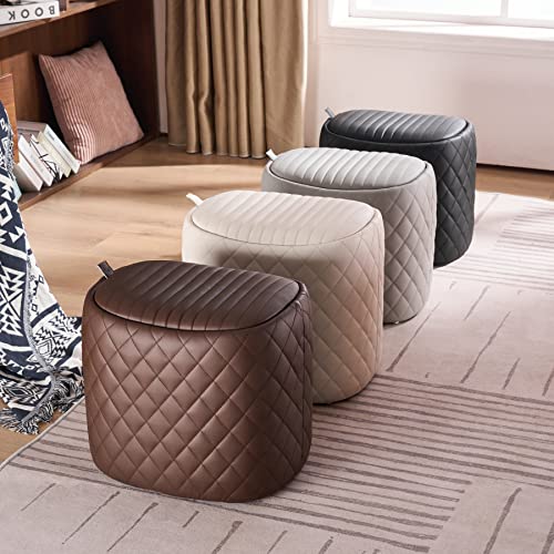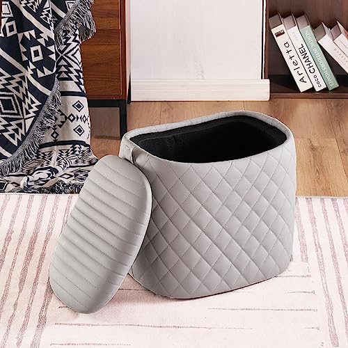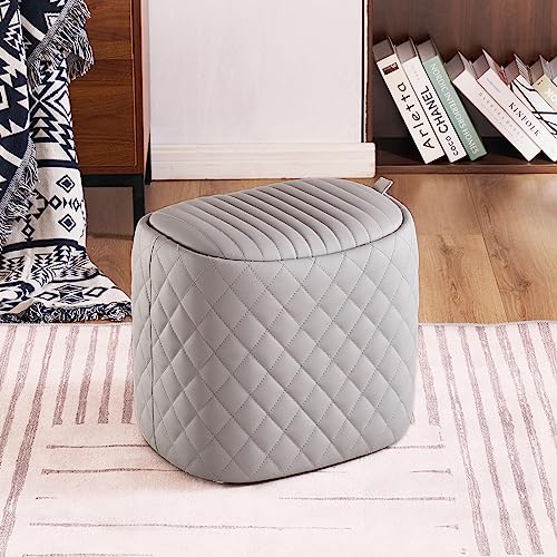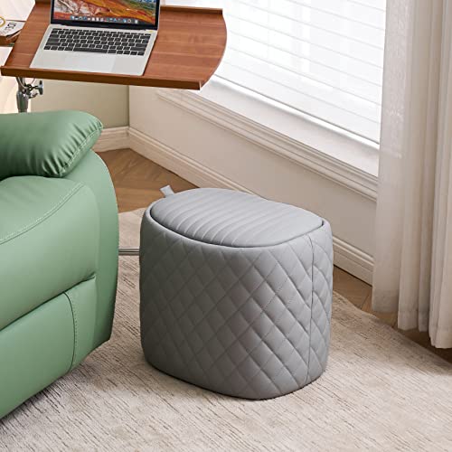 YOUNUOKE - مسند تخزين من يونوك، مسند قدم فاخر مع مساحة تخزين لغرفة المعيشة وغرفة النوم، مسند قدم من الجلد الصناعي، مقعد مبطن على شكل سرج لا يحتاج إلى تجميع، رمادي