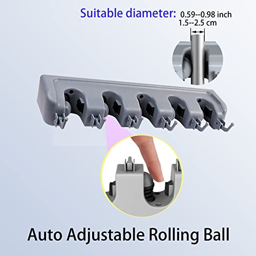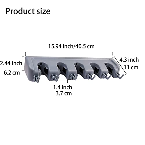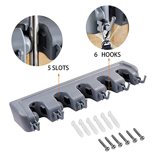 YouOKLight - يو اوكي لايت حامل مكنسة يثبت على الحائط شماعة ممسحة ومكنسة تثبت منظم ادوات الحديقة رف تخزين للمنزل والحديقة والمراب والتخزين 5 فتحات 6 خطافات رمادي بلاستيك