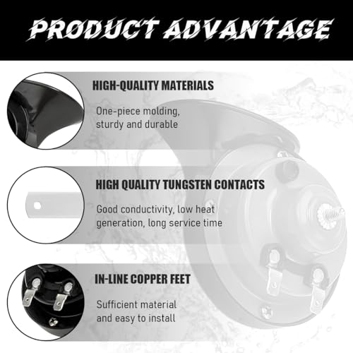 - 【حرفية ممتازة】: يعتمد بوق السيارة الخاص بنا على حرفية إغلاق صارمة، مما يوفر مقاومة ممتازة للماء. يعتمد على تصميم مصبوب من قطعة واحدة، وهو جميل وبسيط. إضافة إلى ذلك، فهو يتكامل مع عملية رش البلاستيك للحصول على أداء مستقر، مما يجعله أداة لا غنى عنها لسيارتك.