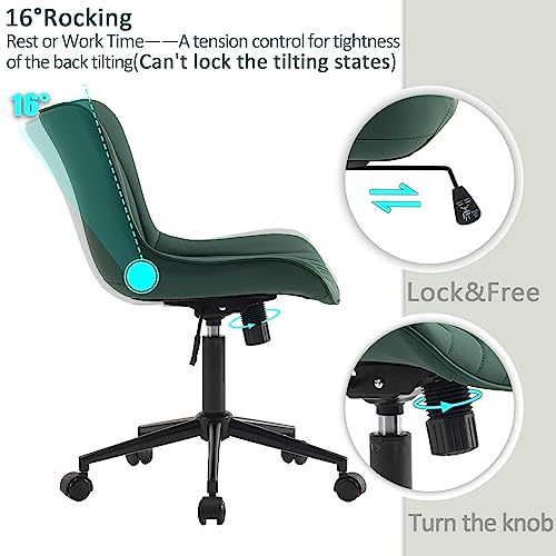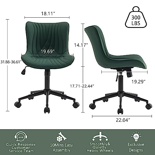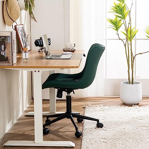 YOUTASTE - كرسي مكتب عصري بدون ذراعين من يوتاستي كمبيوتر دوار بارتفاع قابل للتعديل كراسي خياطة الجلد الصناعي مع عجلات فانيتي انيق للاسترخاء بلون اخضر داكن معدن