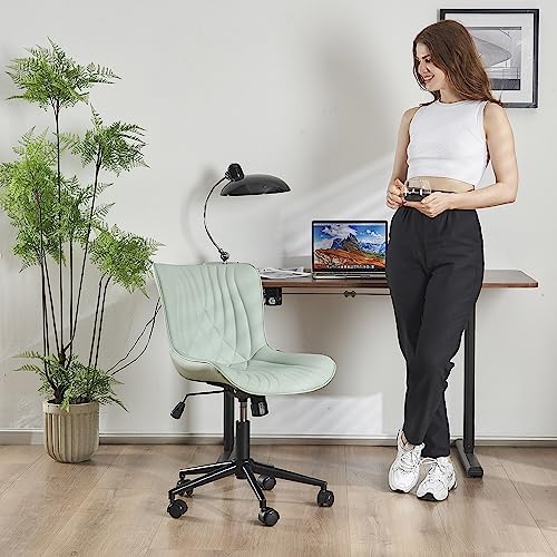 YOUTASTE - كرسي مكتب مريح من الجلد الصناعي مع عجلات قابلة للتعديل يوتاستي استرخاء دوار مبطن عصري للكمبيوتر ظهر بلون اخضر مينت بلاستيك معدن جلد صناعي