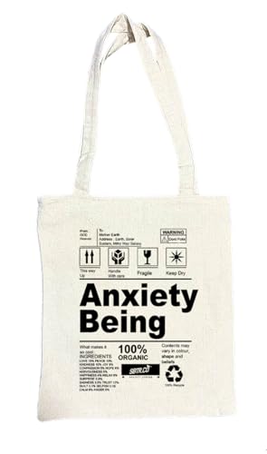Generic - شنطة يد كبيرة توت بيضاء للشباب بعبارة «anxiety being » 26