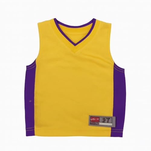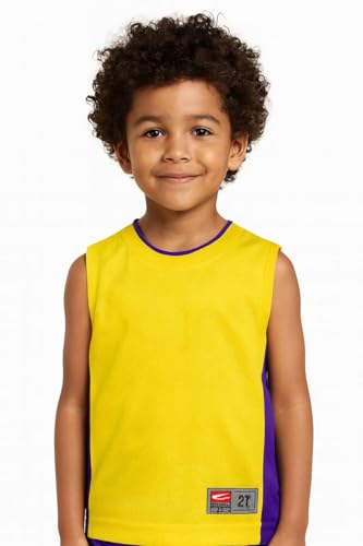 Perfect Fashion - قميص جيرسي لكرة السلة للشباب، اصفر مع حواف ارجواني، توب كات شبكي بدون اكمام للاداء الرياضي، زي تدريب رياضي موحد