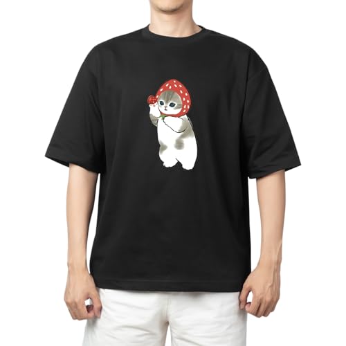 Generic - تي شيرت اسود كبير الحجم للشباب بتصميم قطة كيتي كيتي كاواي قطة لطيفة 104