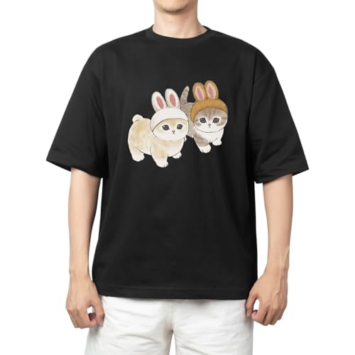 Generic - تي شيرت أسود كبير الحجم للشباب بتصميم قطة كيتي كيتي كاواي قطة لطيفة 107