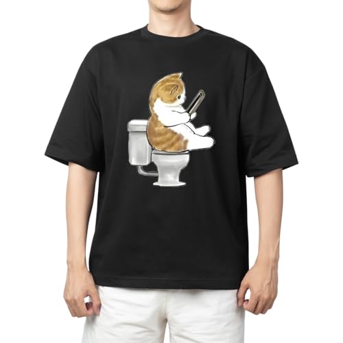 Generic - تي شيرت شبابي أسود كبير الحجم بتصميم قطة كيتي كاواي صغيرة لطيفة 81
