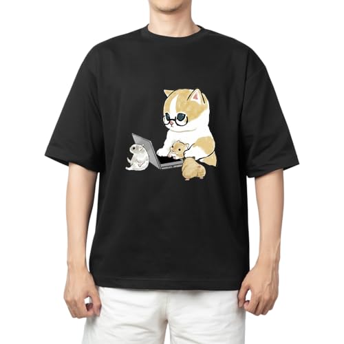Generic - تيشرت بقصة فضفاضة بطباعة قطط كيتي الصغيرة بنمط كاواي للشباب، لون أسود، 86