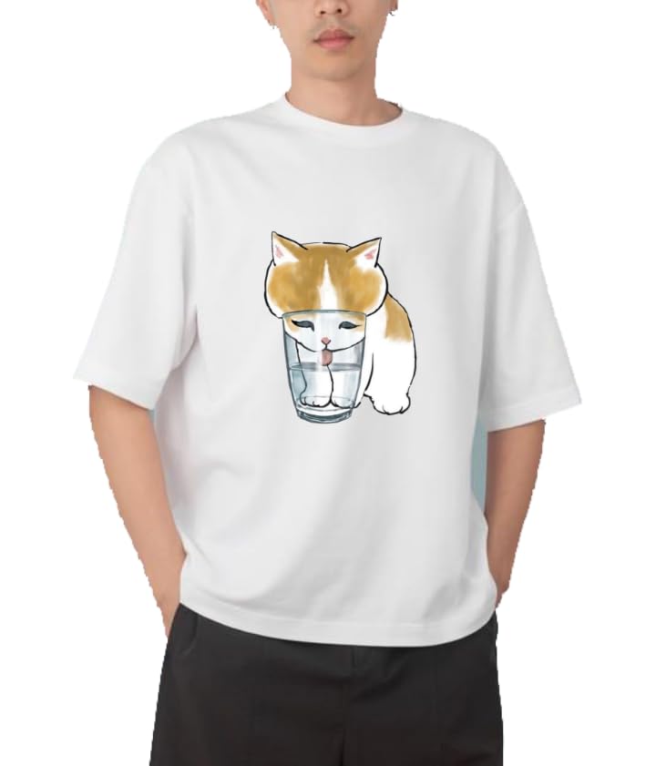 Generic - تيشرت شبابي كبير الحجم بلون أسود وأبيض وتصميم قطة كيتي لطيف، مقاس 39