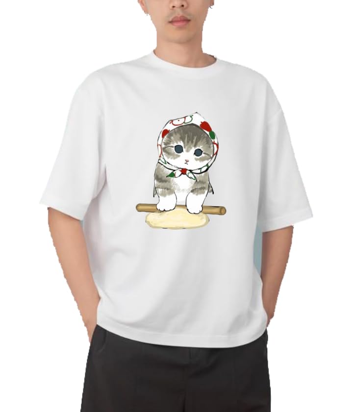 Generic - تي شيرت شبابي كبير الحجم بلون اسود وابيض وقطة كيتي كيتي كاواي لطيف مقاس 85