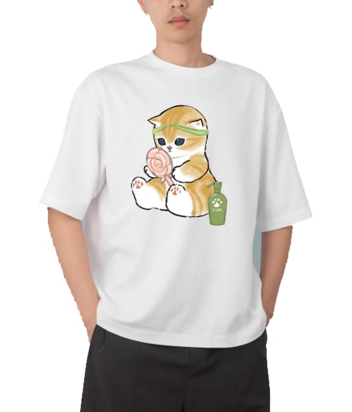 Generic - تي شيرت شبابي كبير الحجم بلون اسود وابيض وقطة كيتي كيتي كاواي لطيف مقاس 92