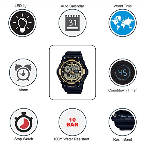 Casio - ساعة كاجوال رقمية بعرض انالوج بعقارب مصنوعة من الراتنج للرجال من كاسيو، AEQ-200W-9A