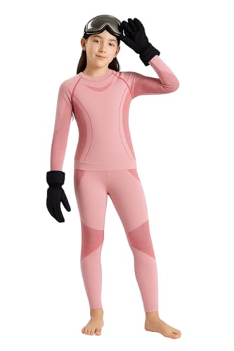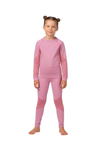 Generic - طقم ملابس أساسية حرارية للأطفال، بلوزة بأكمام طويلة وبنطلون لجينجز بلون وردي مع ألواح شبكية، ملابس رياضية شتوية، مقاس 6-8 سنوات