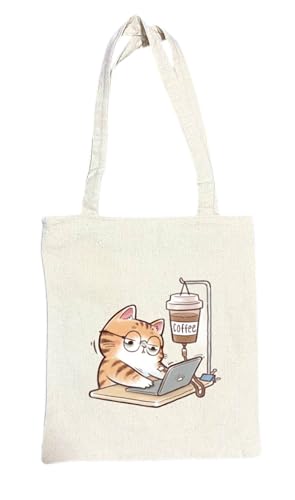 Generic - شنطة يد كبيرة توت للشباب بتصميم كاوايي بطبعة قطة صغيرة، أبيض، 131