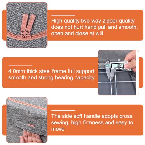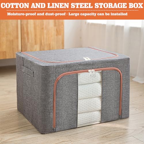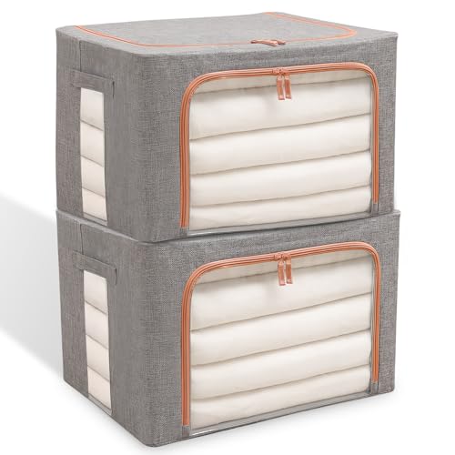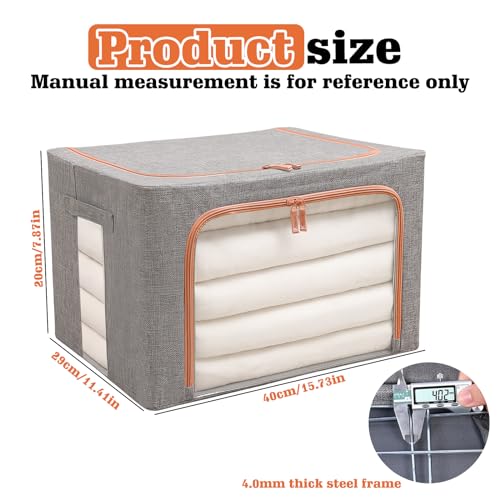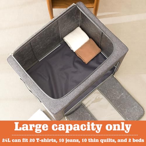 YOYIAG - منظمات لدواليب الملابس والتخزين من يوياج: منظم حفظ وتخزين الملابس بإطار صلب وتصميم قابل للطي، بسوست مزدوجة للفتح ونافذة شفافة ومقابض متينة، شنط تخزين ملابس ومفارش وبطانيات (رمادي، 24 لتر)، قطعتان