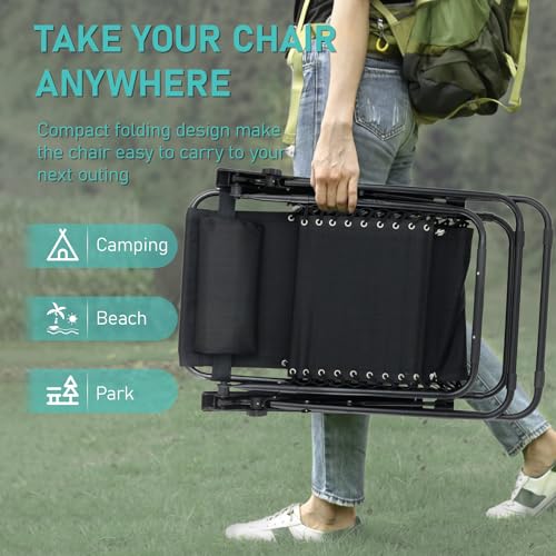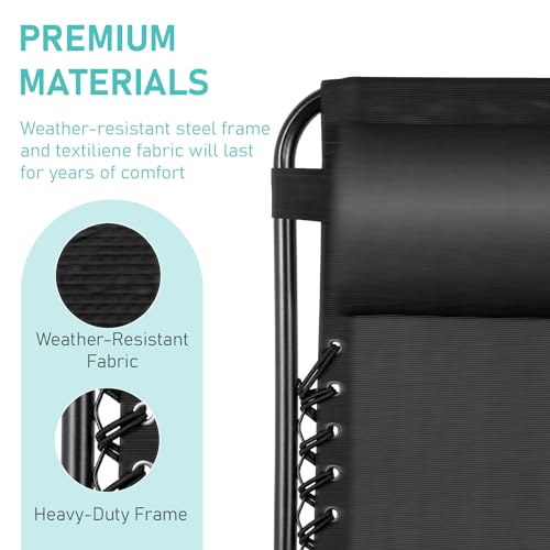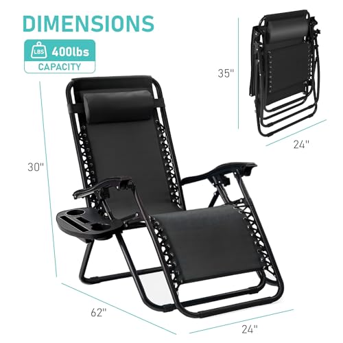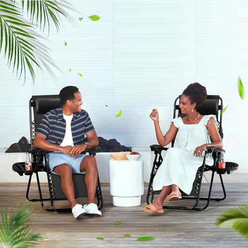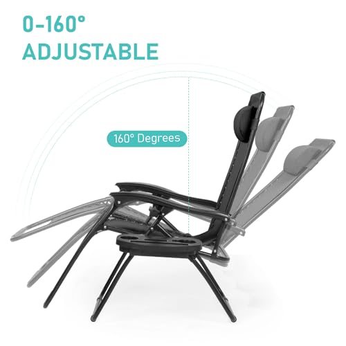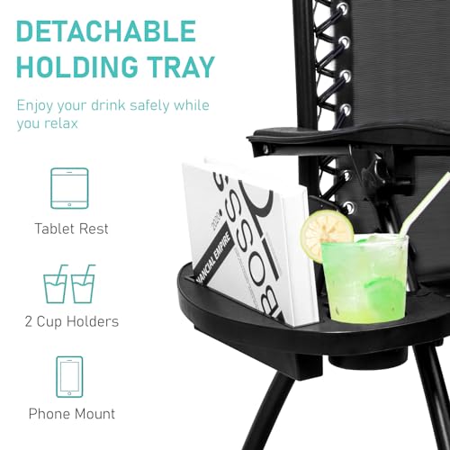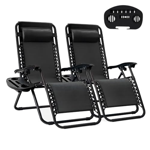 yoyomax - كرسي استرخاء بزاوية انعدام الجاذبية قابل للتعديل، كرسي استلقاء متين مع وصلات قوية، شبكة، مسند رأس، صواني لحمل الأكواب للشاطئ، حمام السباحة، الفناء، الاستخدام الخارجي من يويوماكس، طقم من قطعتين، أسود