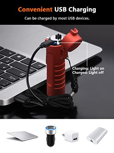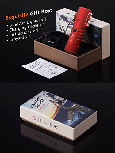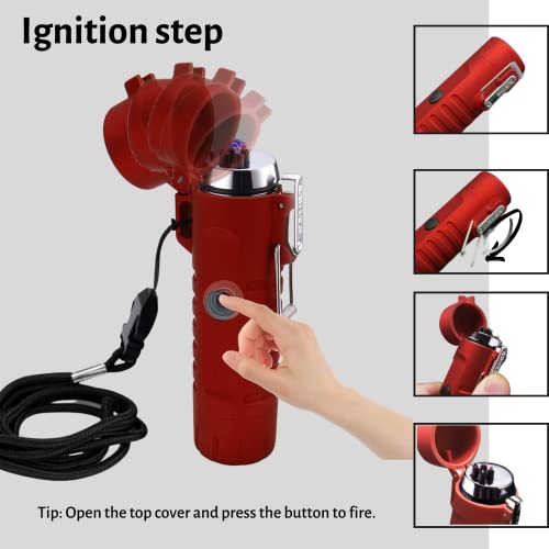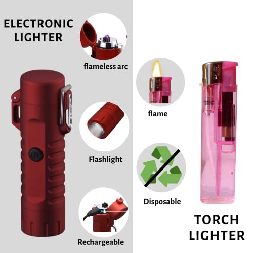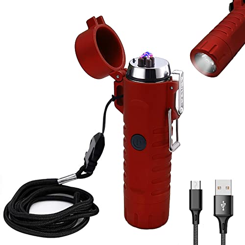 YOZWOO - ولاعة كهربائية للتخييم من يوزو، ولاعة بقوس مزدوج مقاومة للرياح مع مصباح يدوي ليد، ولاعة قابلة لإعادة الشحن بمنفذ USB للمشي لمسافات طويلة في الهواء الطلق، ولاعة مقاومة للماء لمعدات النجاة (أحمر)