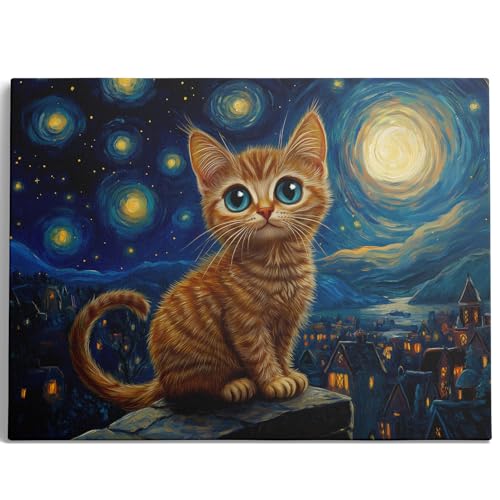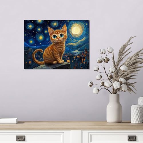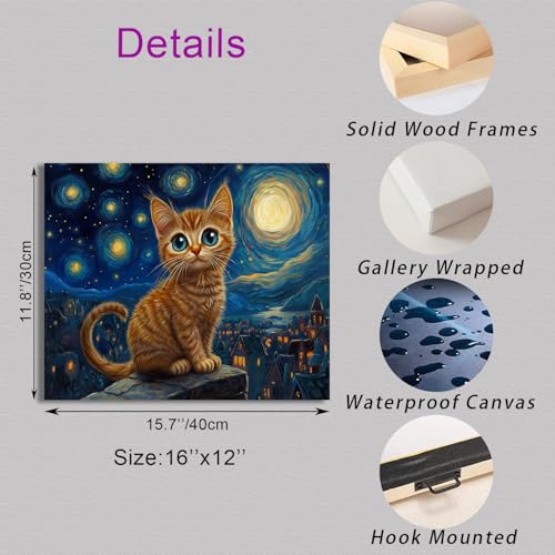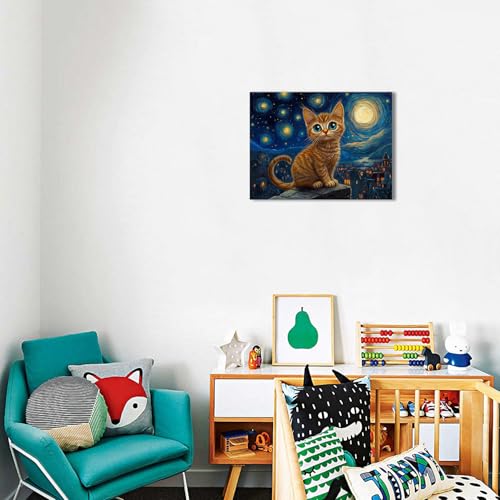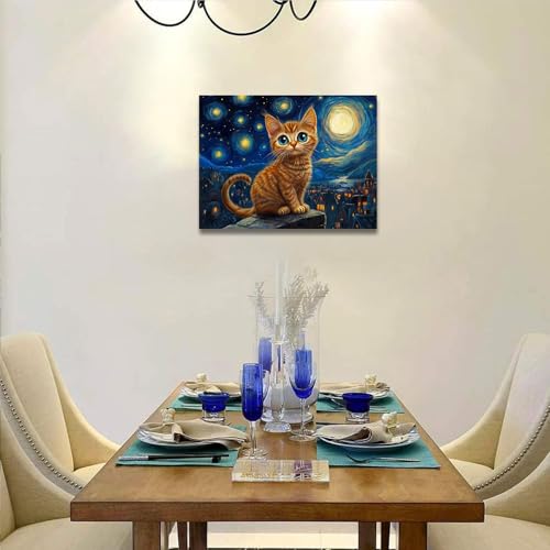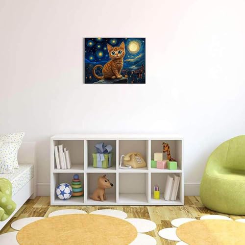 Ypxzzj - لوحة فنية جدارية قماشية بتصميم ليلة مرصعة بالنجوم مع قطة من واي بي اكس زد زد جيه، لوحات فنية على شكل قطة ليلية لديكور الحائط لغرفة النوم وغرفة المعيشة باطار جاهز للتعليق