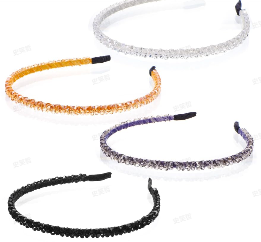 YQQYG - طوق رأس مرصع بأحجار الراين، شريط رأس كريستالي شفاف لامع للحفلات للنساء والفتيات والمراهقات، 4 قطع من واي كيو كيو واي جي