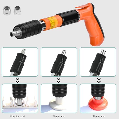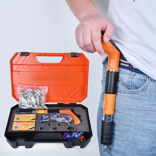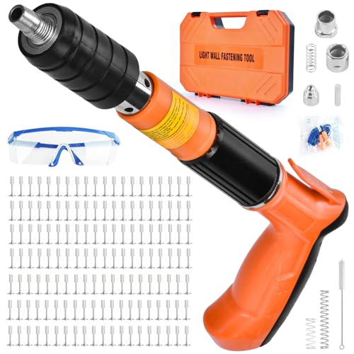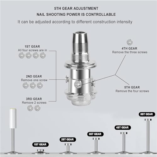 YQXTOOEL - مسدس مسامير صلب حديث، نسخة مطورة بخمس مستويات طاقة قابلة للتعديل، أداة دق المسامير مزودة بقفازات ومفتاح ونظارات وسدادات أذن من YQXTOOEL