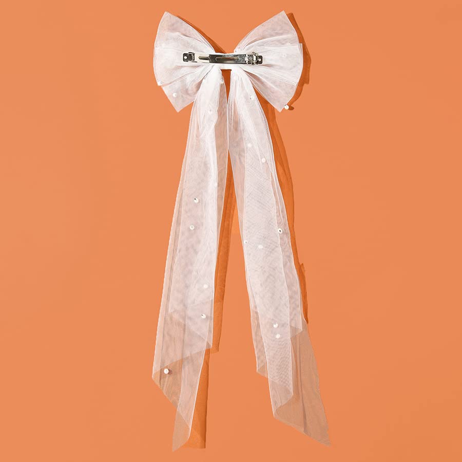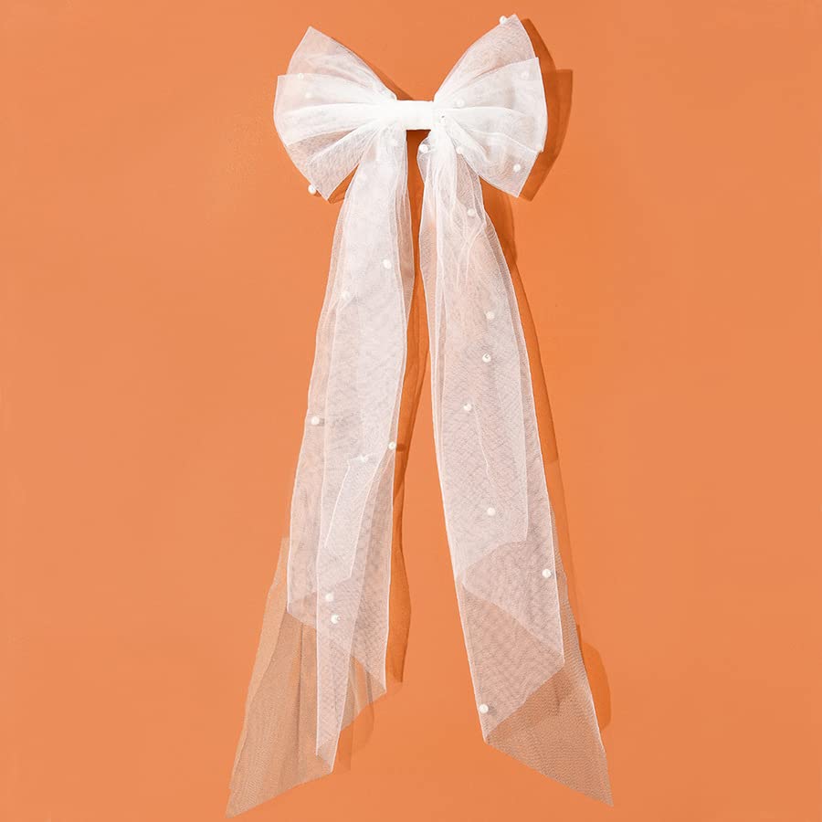 YRlilicc - طرحة زفاف قصيرة للنساء مع فيونكة من التل المزين باللؤلؤ لحفلات الحناء من يرليليك، توكة بيضاء لحفل استقبال العروس، هدايا وصيفات العروس