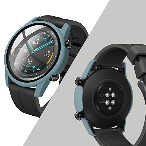 - [تصميم متوافق مع هواوي GT2 46 ملم]: هذا الجراب متوافق مع هواوي GT2 46 ملم عالي الجودة رفيع للغاية مع واقي شاشة زجاجي. بولي كربونات صلب متين غير لامع وزجاج مقوى بدرجة صلابة 9 يغطي الشاشة والحواف، غطاء كامل يحمي ساعة GT2 46 ملم