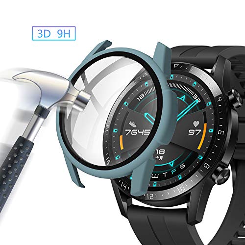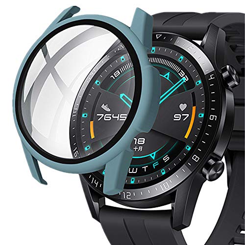 Yrzper - شاشة حماية متوافقة مع ساعة هواوي GT2 مقاس 46 ملم فائقة النحافة HD عالية الدقة من الزجاج المقوى، غطاء حماية صلب شامل غير لامع بحواف حماية من واي ار زبير (أخضر)، تيمبرد جلاس