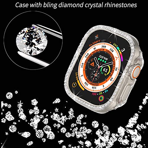 Yrzper - جراب حماية ألماسي لامع للنساء والبنات من ايرزبر، متوافق مع ساعة آبل ووتش الترا 2/ آبل ووتش الترا 49 ملم، من البولي كربونات الممتص للصدمات، جراب من حجر راين لامع وكريستال، اكسسوارات ساعة ذكية (شفاف)