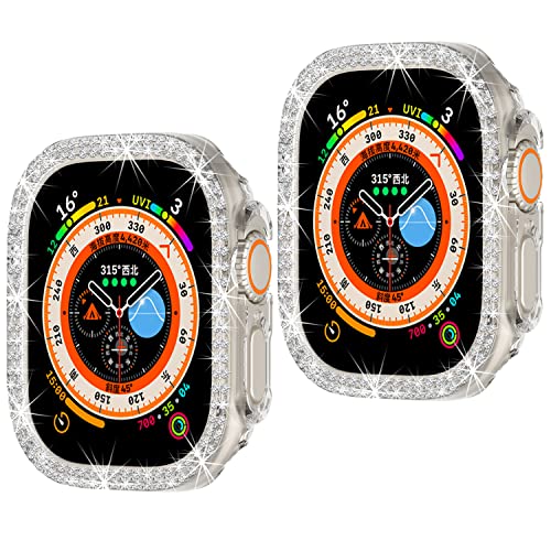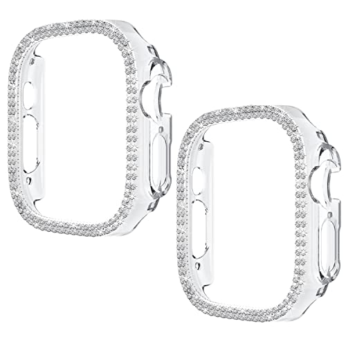 Yrzper - متوافق مع ساعة ابل الترا 49 ملم، جراب حماية مزدوج الصف من البولي كربونات ممتص للصدمات للنساء والفتيات من حجر الراين الكريستالي اللامع (عبوة من قطعتين)