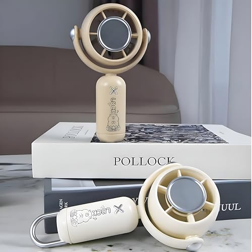 Generic - مروحة محمولة يدوية بتصميم حيوانات لطيف موديل YS-2507 ثلاث سرعات خفيفة الوزن قابلة للشحن -1.5 وات - خمس ريش دوارة (اوفوايت)