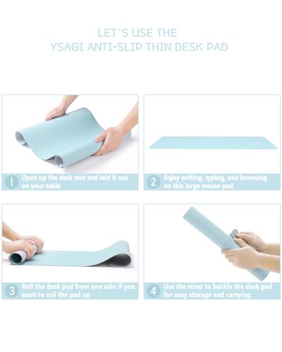 YSAGi - وسادة مكتب كبيرة من الجلد غير القابل للانزلاق مقاومة للماء لحماية الطاولة واستخدام اللاب توب ولوحة المفاتيح والماوس مناسبة للمكتب أو المنزل أو العمل أو للديكور، لون سكاي بلو، مقاس 80 × 40 سم