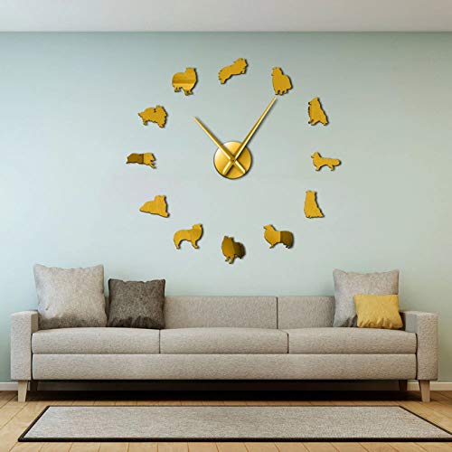 generic - ساعة حائط كوارتز صامتة كبيرة الحجم بتصميم فني يمكنك ترتيبه بنفسك على شكل فصائل كلاب المزرعة وشيتلاند وكولي بلون ذهبي 47 بوصة YSEQP، أكريليك
