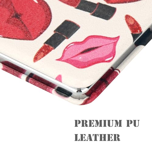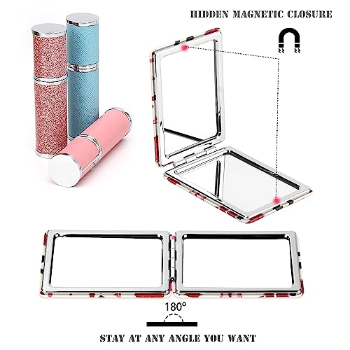 YTLX - مراية مكياج صغيرة الحجم للبنات والنساء، مرايا مستحضرات تجميل أنيقة ورفيعة للسفر للجيب والمحفظة وشنطة اليد، مراية صغيرة محمولة باليد مع جلد صناعي أحمر من YTLX