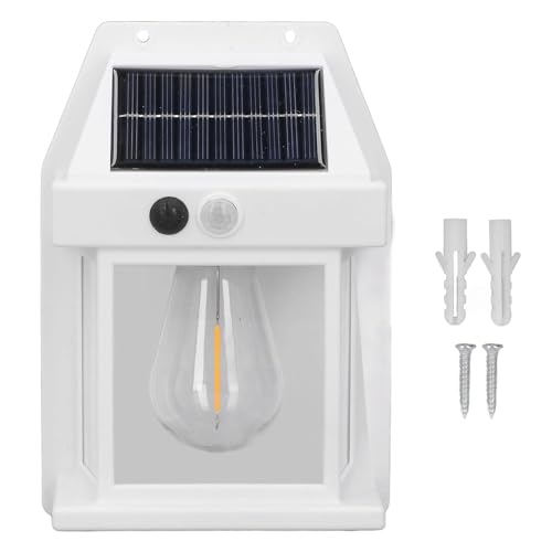 YU WELL - مصباح حائط من يو ويل يعمل بالطاقة الشمسية بمستشعر حركة للإضاءة الخارجية مقاوم للطقس وبـ 3 أوضاع قابلة للتعديل، مصباح حائط يعمل بالطاقة الشمسية لحديقة الفيلا والفناء والممر (موديل 3-أبيض، قطعة واحدة)