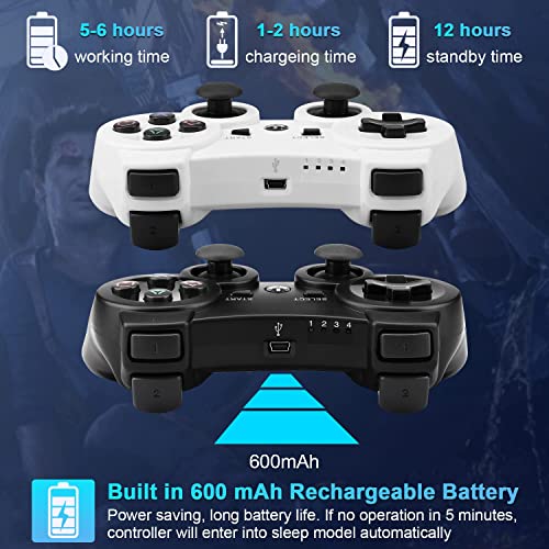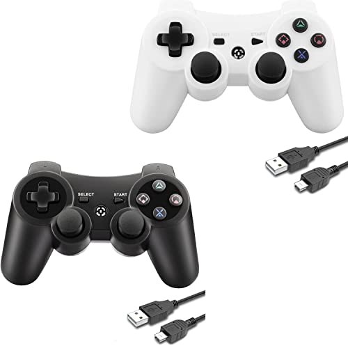 YU33 - وحدة تحكم لاسلكية تعمل مع بلاي ستيشن 3 لاسلكي لجهاز جهاز عن بعد / ماندو/ دي بي ايه كابل شحن 2023 اسود وابيض